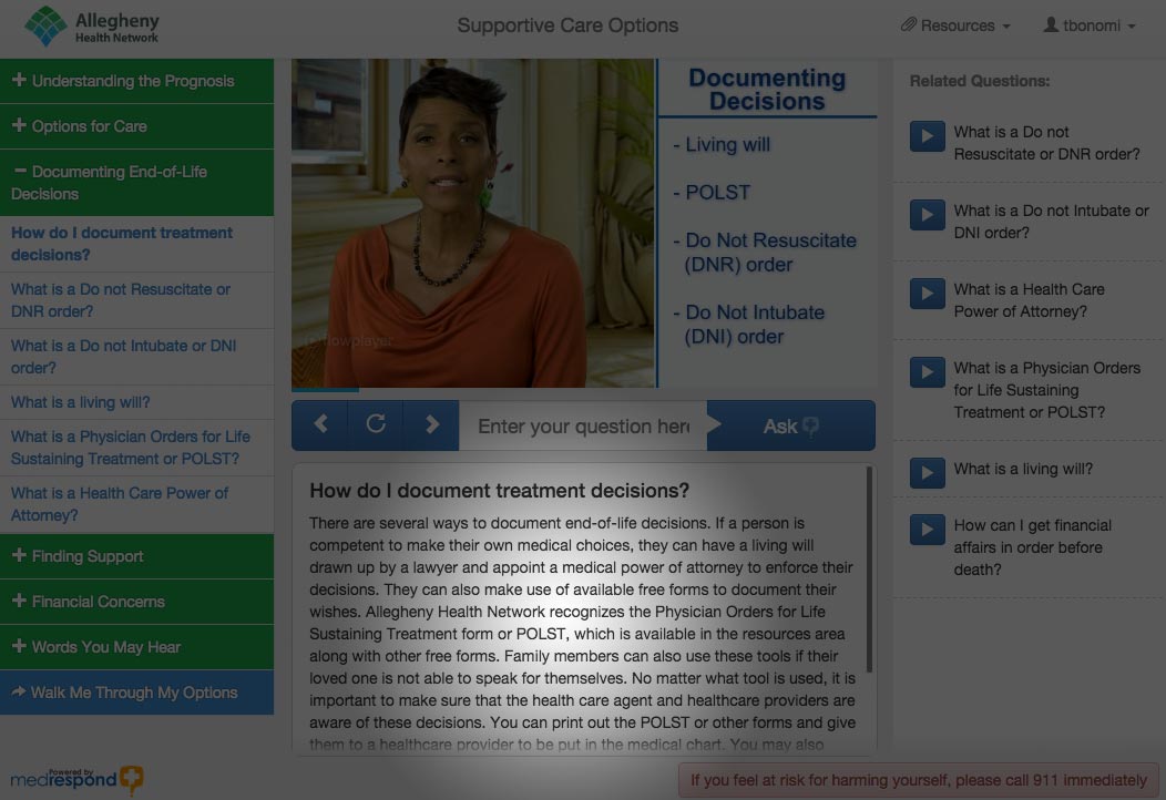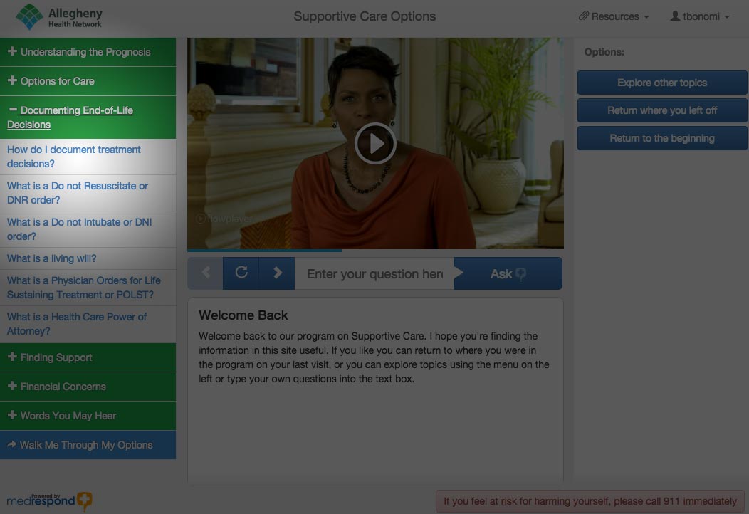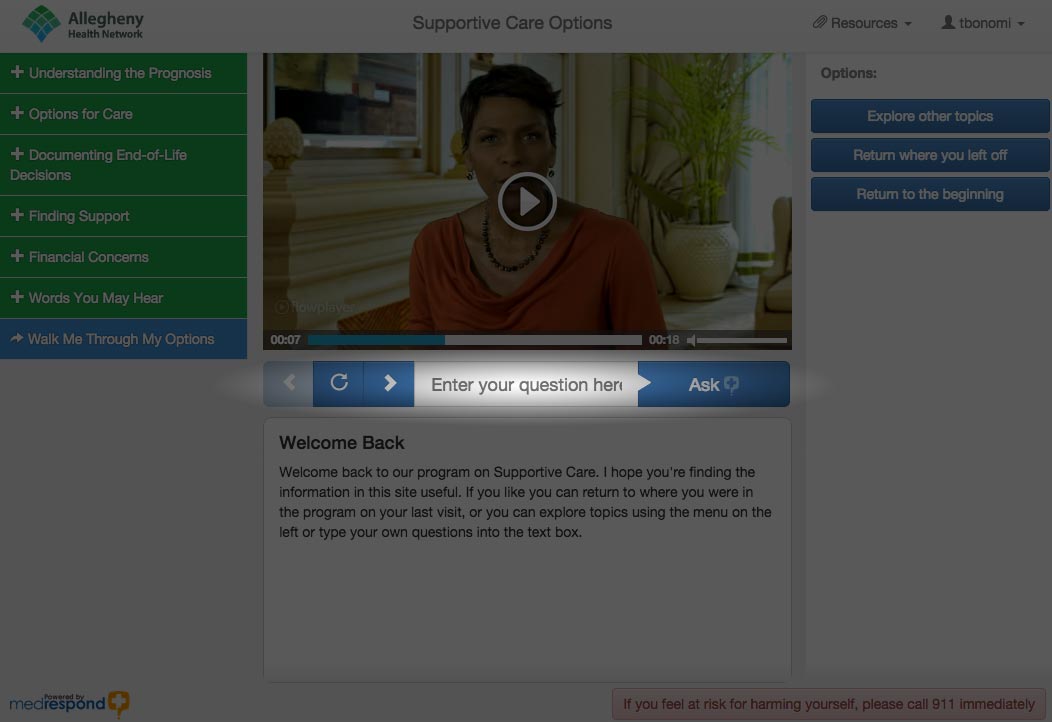 The program provides a guided discussion of Fit For Surgery (click Review Options on the 3rd screen) or you may ask questions (click Ask a Question). We would appreciate your reviewing options, asking questions and then, giving us your feedback by clicking on "Give Us Your Feedback" under the Resources tab.